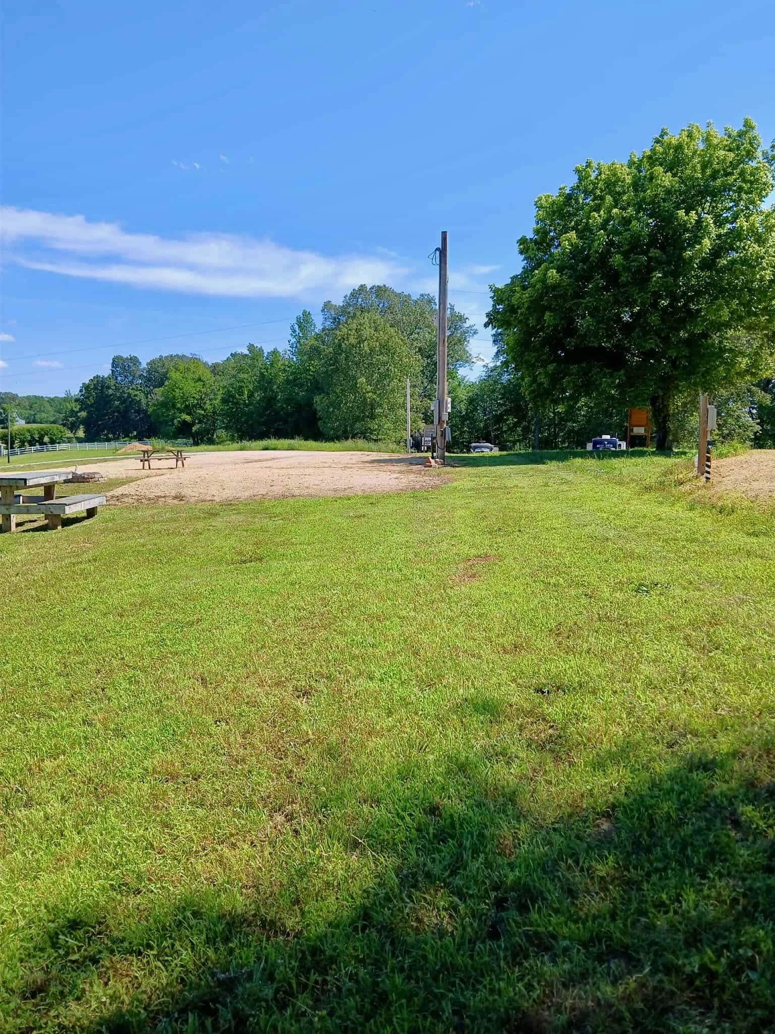 The B lot that comes with this site is .50 acres. The B lot has two huge existing RV pads, all with city water taps, septic, and 50 amp electric. All of the RV sites have a stone fire pit and custom-built picnic tables. This site is located in a quiet cul-de-sac in the community. There is plenty of room to add a third pad on this site for an RV, a tiny home, tents, or a home or cabin with a permanent structure.