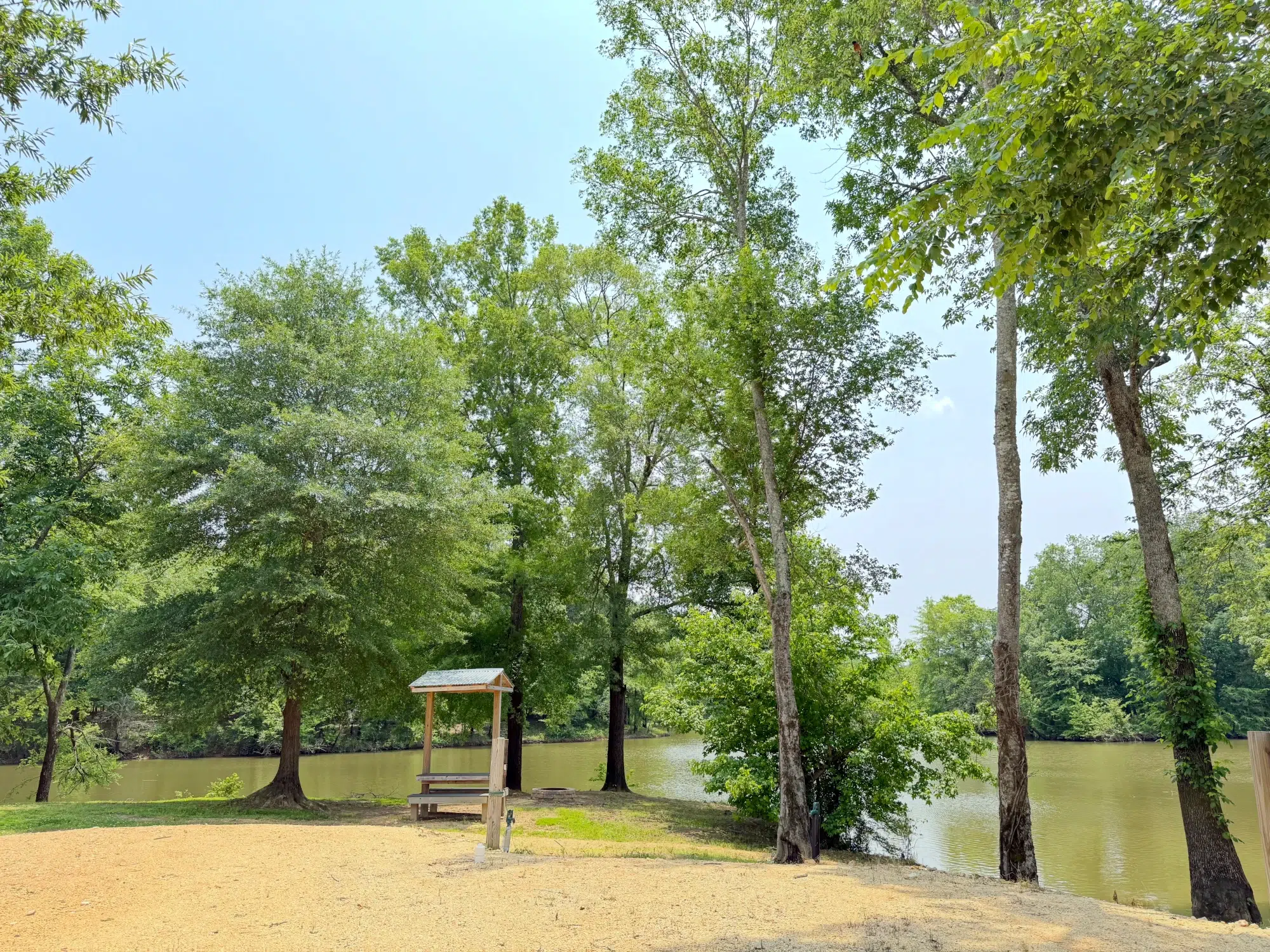 The waterfront A lot for 213 A is .355 acres. This site has two sets of full hookups. There is a septic system in place, 30 and 50 amp electric, and a city water tap. There is fiber high-speed WiFi installed. This site sits on a cove with quick and easy access into the main channel of the TN River. This is the perfect site for privacy and easy access into the water to fish, kayak, standup paddle board, or swim right from your site. The view of the water and trees is so peaceful. The large shade trees on this site are so nice to keep you cool in the summer. You can have RVs, tiny homes, and tents on this site. A RV pavilion is allowed. There is plenty of room for multiple RVs. This site has a custom-built picnic table and stone fire pit. You can put a dock on this site and pull your boat right up.